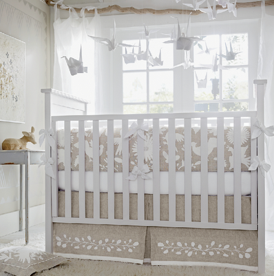 The new Marlo Nursery bedding is part of Serena & Lily’s exquisite Heirloom Collection. Inspired by traditional Mexican folk art, the silky embroidery and nature motif would be delightful for a baby girl or boy. The flat-style bumper is embroidered on both sides with white ties and a zippered slipcover that removes easily for washing. Simply gorgeous!