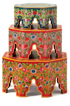 The Chai Nesting Tables at $369 are my favorite. These vibrant hand-painted tables look great in the little girl’s room above, but would add a bit of whimsy to any room.