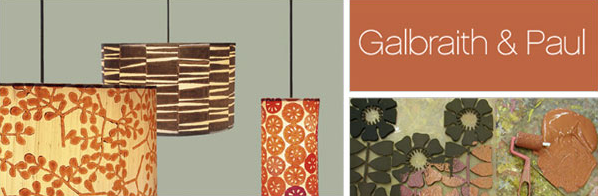 Founded in 1986, Galbraith & Paul have been creating custom lighting and textiles that strive to meet the highest standards in design and craftsmanship. Begun originally as a hand papermaking studio specializing in lamps with hand made paper shades, they’ve evolved into a fabric design and printing studio focusing on lighting with hand block printed silk shades and textiles of silk, linen and velvet. They also create gorgeous made to order hand-tufted rugs to the trade.