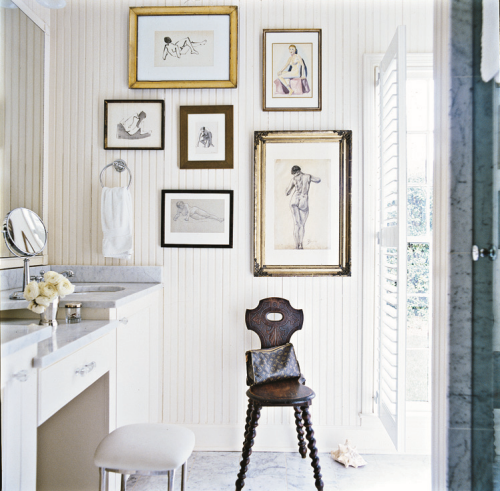 I also loved the nautical- and travel-themed works, such as these framed vintage swim suits (American Garage / booth 8) were also found throughout the exhibition.