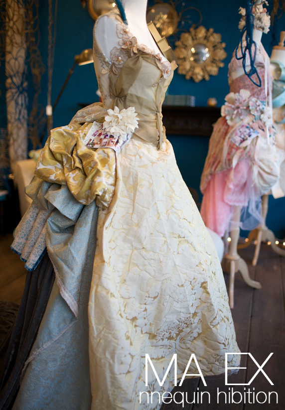 Annette: It has been quite a ride and I am often looking for ways to slow down! But recently we designed a group of one of kind dress forms for the book tour that are amazing. Dresses made out of home decor materials such as wallpaper, tile, hardware and more. They were so fun to work on and the hands on creating is what I really miss. I hope to do more of that in the future. I love the idea of ” bespoke” tailoring and think that adding more of that to the products I make is exciting.. and maybe another book! {for “The Making of the Mannequin Exhibit” go to Annette’s blog here}