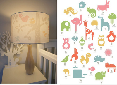 Here’s a darling Forest Family Lampshade {left} and an adorable Animal Alphabet Limited Edition Print {right}.