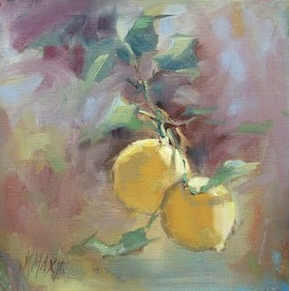 I was recently introduced to fine artist, Mary Maxam via a giveaway on Karena’s blog, Art by Karena. Last Sunday evening, I found out that I had won the beautiful oil on canvas by Mary named “Lemon Light.” I’m still pinching myself!