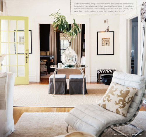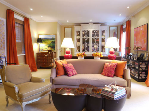 I love to see how a room evolves overtime. Here’s a photo of Amanda’s living room a couple of years ago. As you can see some changes have been made. The drapes {now tangerine}, stools {replaced the pillow tucked under the console} and sofa {darker upholstery fabric} are all new.