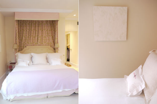 A sweet canopy in ‘Springtime Rose’ fabric by Christopher Farr frames the bed beautifully.