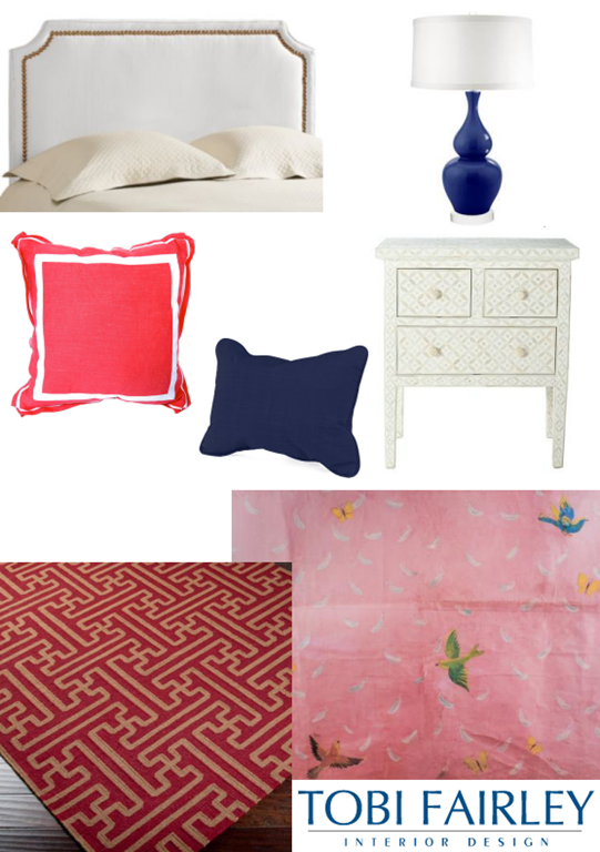 Campaign Storage Bench from Serena & Lily. The color and pattern of the upholstered cushion was up to them.