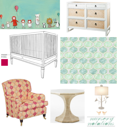 pendant light is simple and chic, but has just the perfect amount of detail. Of course, there still needs to be a crib and dresser, but I imagine those things have already been purchased for the nursery and these are some sweet updates.” – Leanne {