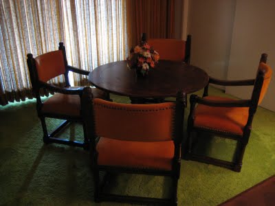 Here is a view of the dining room that was open to the kitchen and living room. I am not positive, but I think the chairs were reupholstered at one point in time.