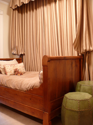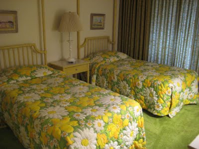 The guest bedroom had two lovely twin beds each with matching floral quilts. I just loved the faux bamboo headboards in brushed lemon with white. The sweet night stand is also in the same finish.