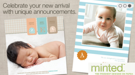 A huge thank you to Minted for sponsoring this wonderful giveaway. Be sure to drop by to take a look at all the fun new designs, like these darling birth announcements.