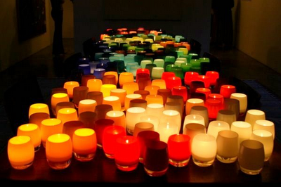 No, this is not another one of Bailey’s events; It’s his dining area in his cozy and colorful NYC apartment. Once part of a wedding by Bailey, the glass ball ornament is beautifully reflected in the enormous floor to ceiling mirror – great design element to visually enlarge a small space. The furnishing throughout the apartment was by designer and friend Vincent Wolf.
