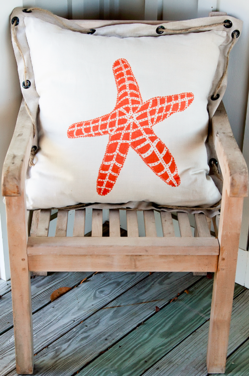 As I mentioned earlier, Bolt House Textiles would like to giveaway one of their lovely pillows. The 24” x 24” pillow in Large Starfish/Clementine is printed on Gina Classic with single flange/black grommet and jute rope detail. It also includes the 50/ 50 down insert and retails for $165.