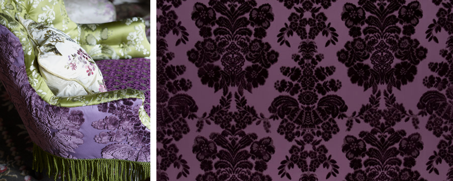 Designers Guild – Darnley in Heather – silk velvet with classical motif in Heather