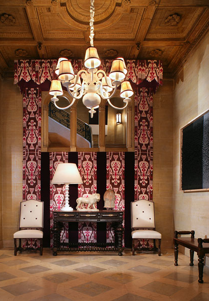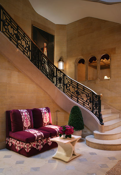 New York-based designer, Christopher Maya combines shades of purple and pink to create an exquisite formal foyer and vestibule at this year’s Kips Bay Show House.
