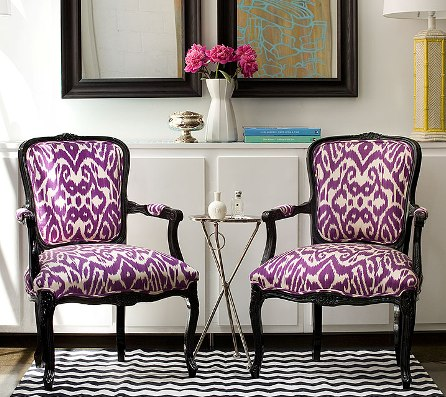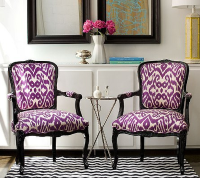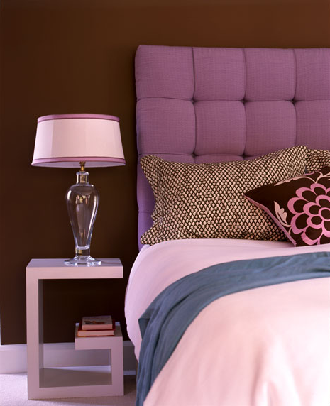 Trend setting interior designers have already added shades of purple back into their color schemes. New York-based designer, Amanda Nisbet created a dramatic bedroom in purple, brown and white. Loving the Louis XV chair and foot stool in white with brown and white contemporary upholstery! And the throw pillow pulls the color scheme together perfectly.