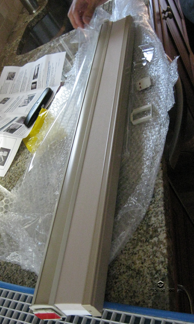 Redi Shade claims that their custom shade can be installed securely in seconds without the need for a drill, screws, or traditional brackets, making it a fast and easy. So with the clock ticking, we {my client I should say} started installing the shade…