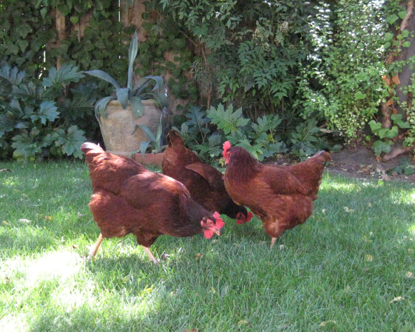 Chickens will need free roaming time if a coop does not provide a minimum of 10 square feet per fowl. Although they can be a bit messy, chickens are great foragers and enjoy eating insects, grasses and slugs and snails. Above is a shot of my friend’s hens in action.