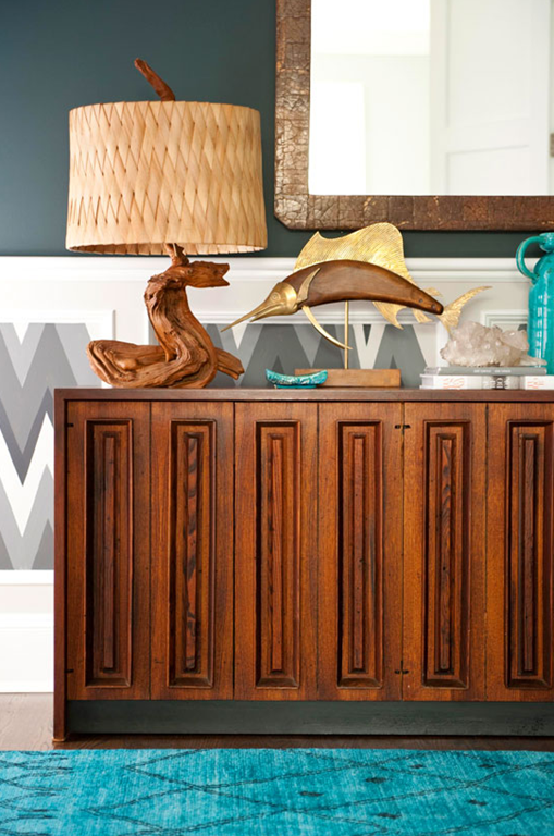 What I love: The wall panels painted in a whimsical chevron pattern.