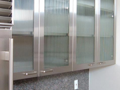 A fluted glass insert, as seen in the stainless steel cabinets above is another good option if you struggle to keep your dishware organized. Image courtesy of Luxury Housing Trends.