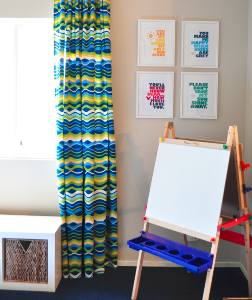 prints in a project and am so glad it worked in this playroom! I love how Kate stacked them and placed near an art easel. Love!