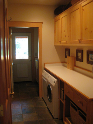 Recently I helped clients in Lake Tahoe, Nevada organize their cluttered mudroom into a beautiful and functional space. The room serves several purposes including laundry, outerwear storage, business supplies, scrapbooking materials and floral vases.