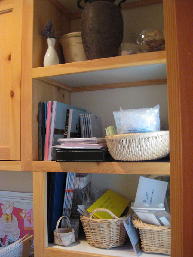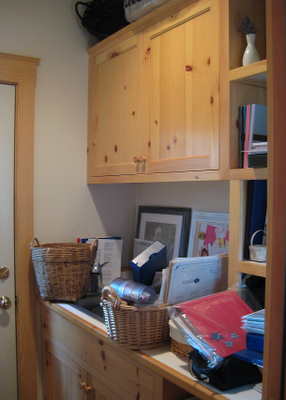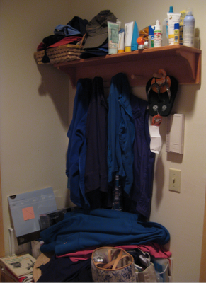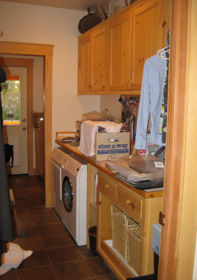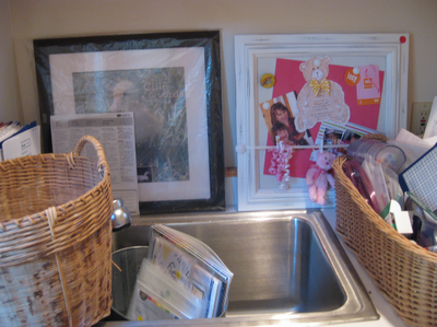 The picture above is a view of the laundry area. The counter is covered with boxes, business supplies and scrapbook materials. It was impossible to fold clothes on the counter in this condition.