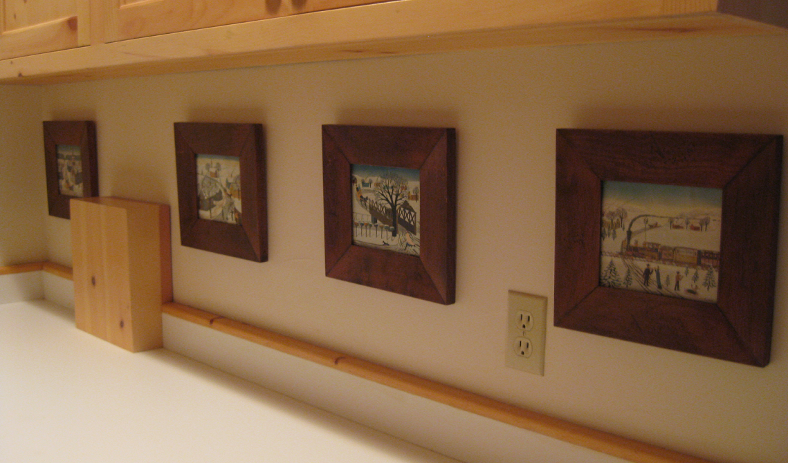 The client had a series of prints from her childhood that were being stored away. We decided to showcase them above the counter.