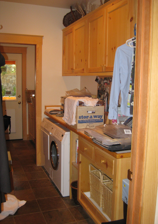 Now the laundry area is clutter-free and the counter top clear. Isn’t this a space you could fold clothes in?