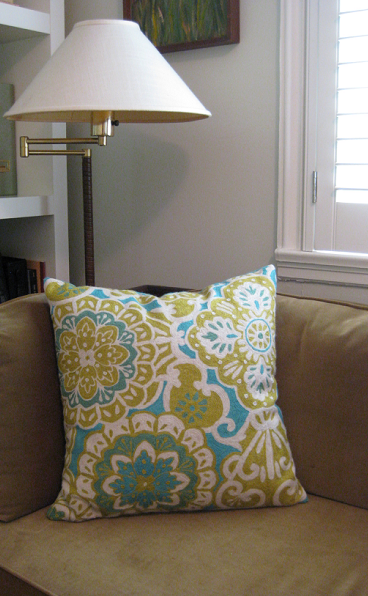 With the mayor’s wife in mind, a lighter color palette of gray was selected for the library. The lush velvet Holly Hunt sofa is beautifully framed by the floor length draperies in wool. The orange accents – throw pillow and books – are fabulous too!